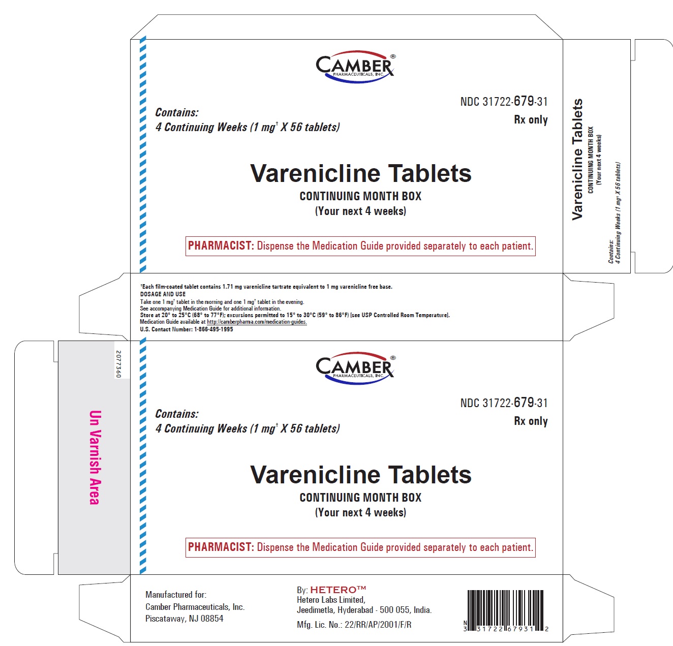 The following 11 images provide visual information about the product associated with Varenicline NDC 31722-679 by Camber Pharmaceuticals, Inc., such as packaging, labeling, and the appearance of the drug itself. This resource could be helpful for medical professionals, pharmacists, and patients seeking to verify medication information and ensure they have the correct product.