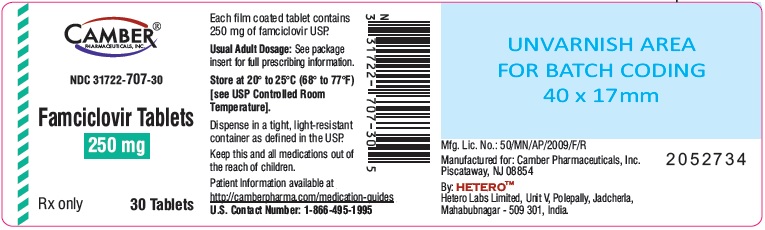 The following 6 images provide visual information about the product associated with Famciclovir NDC 31722-707 by Camber Pharmaceuticals, Inc., such as packaging, labeling, and the appearance of the drug itself. This resource could be helpful for medical professionals, pharmacists, and patients seeking to verify medication information and ensure they have the correct product.
