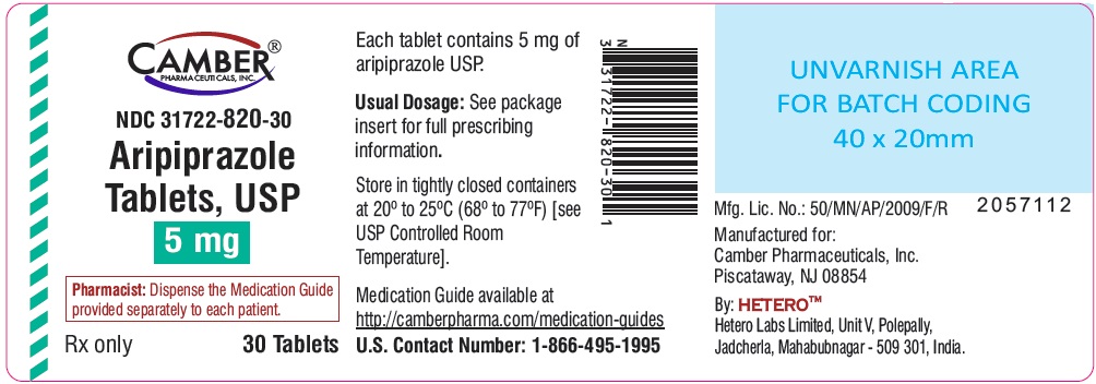Aripiprazole is a tablet medication in the USP that is usually prescribed in 5mg doses. It is dispensed with a medication guide separately provided for each patient by the pharmacist. It should be stored in tightly closed containers at a controlled temperature. Full prescribing information is included in the package insert. The medication guide is available at http://camberpharma.com/medication-guides. The manufacturer is Hetero Labs Limited, which is licensed to produce the medication for Camber Pharmaceuticals, Inc. Batch coding is available in an unvarnished area on the package.*