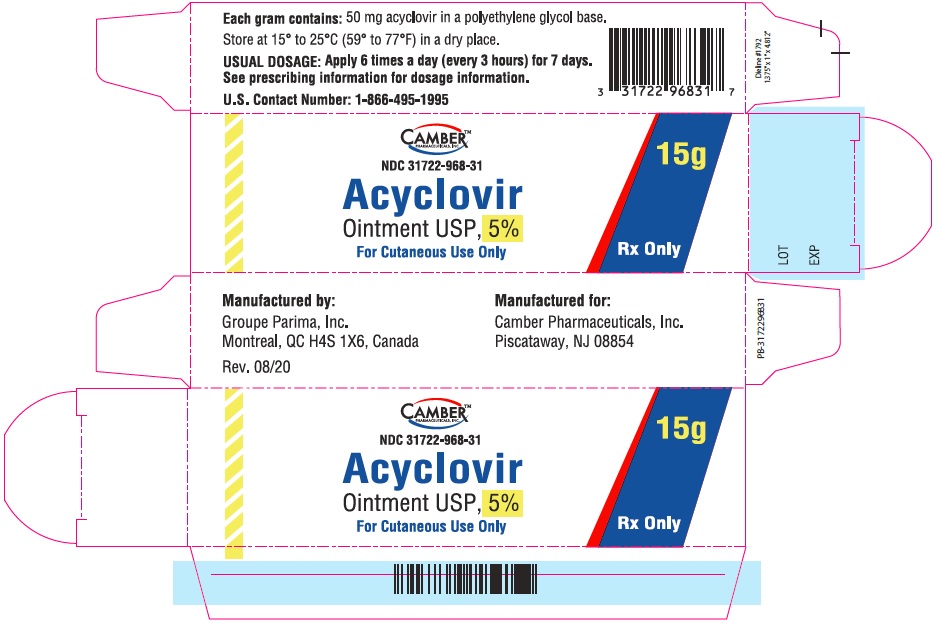 The following 3 images provide visual information about the product associated with Acyclovir NDC 31722-968 by Camber Pharmaceuticals, Inc., such as packaging, labeling, and the appearance of the drug itself. This resource could be helpful for medical professionals, pharmacists, and patients seeking to verify medication information and ensure they have the correct product.