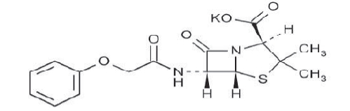 Penicillin V is the phenoxymethyl analog of penicillin G. Penicillin V potassium is the potassium salt of penicillin V. Penicillin V Potassium is designated chemically as 4-Thia-1-azabicyclo [3.2.0] heptane-2-carboxylic acid, 3,3-dimethyl-7-oxo- 6-[(phenoxyacetyl)amino]-, monopotassium salt, [2S-(2α,5α,6β)]-. It has the following chemical structure: