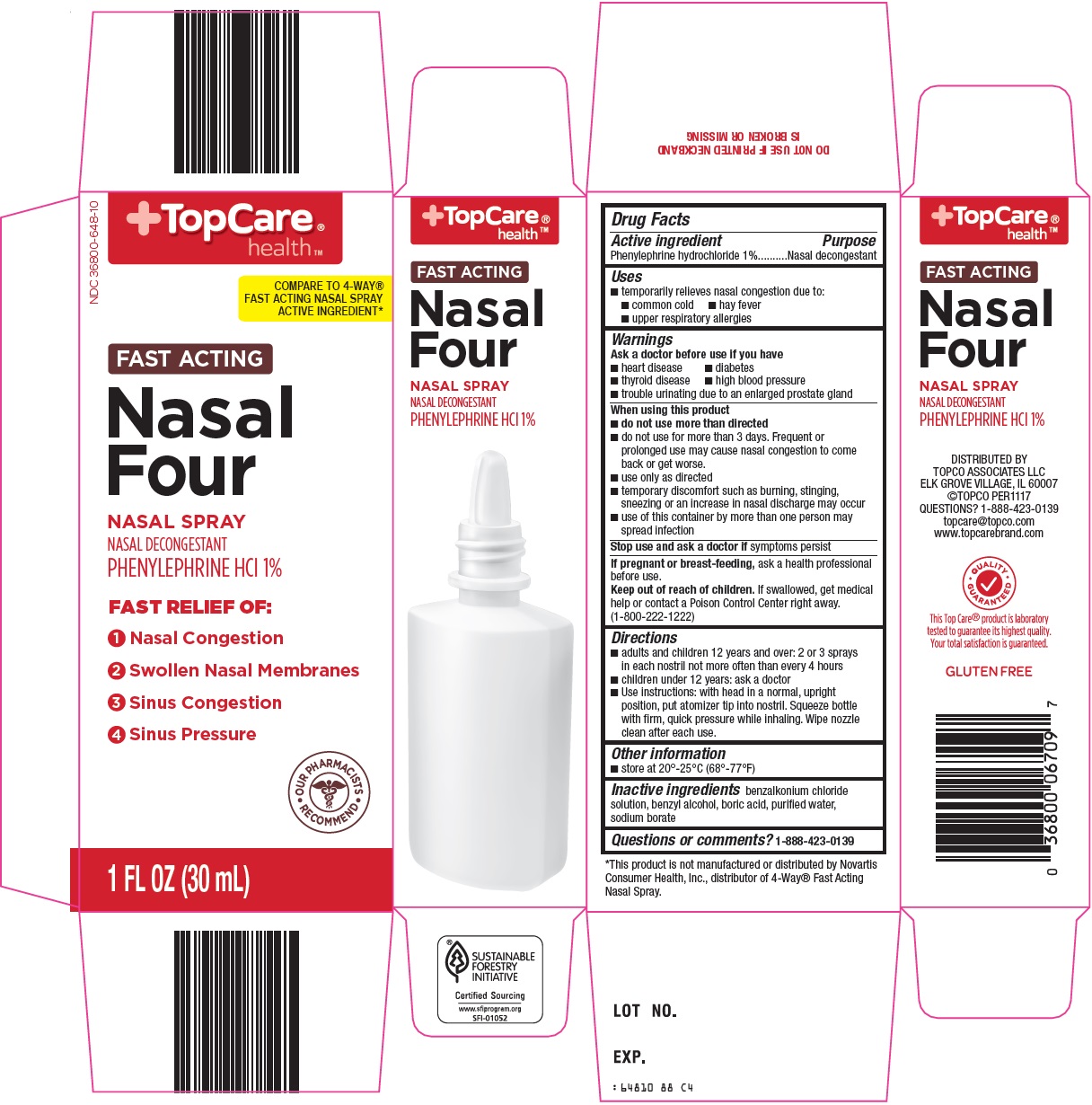 The following image provide visual information about the product associated with Topcare Nasal Four NDC 36800-648 by Topco Associates Llc, such as packaging, labeling, and the appearance of the drug itself. This resource could be helpful for medical professionals, pharmacists, and patients seeking to verify medication information and ensure they have the correct product.