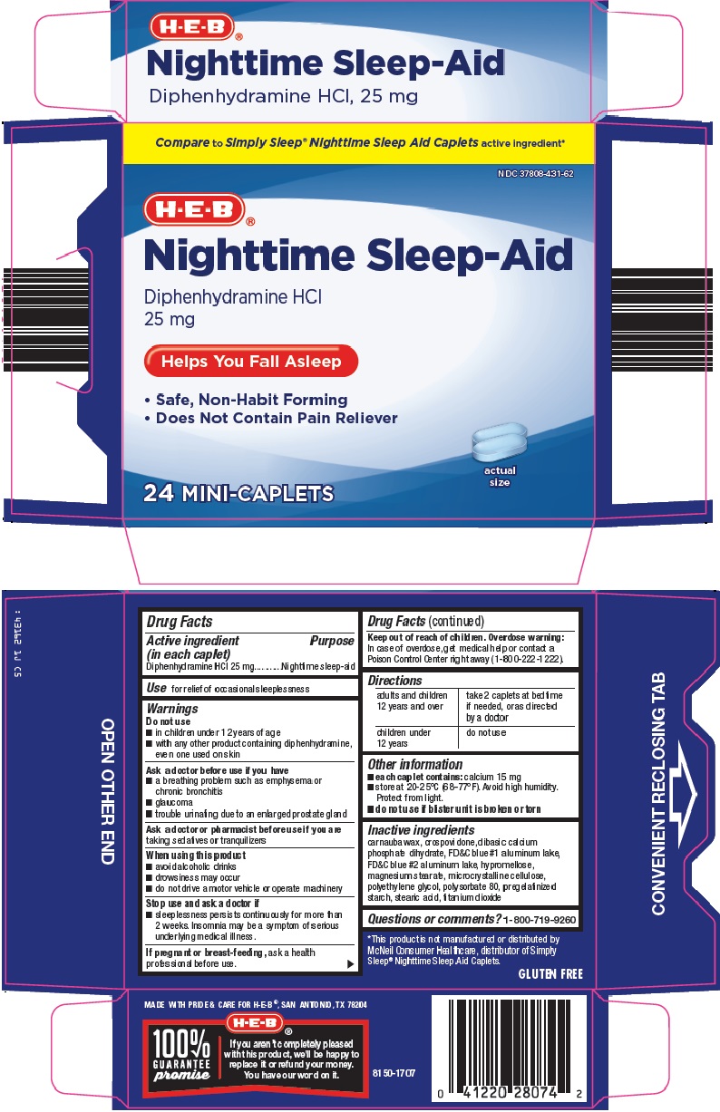The following image provide visual information about the product associated with Nighttime Sleep Aid NDC 37808-431 by H E B, such as packaging, labeling, and the appearance of the drug itself. This resource could be helpful for medical professionals, pharmacists, and patients seeking to verify medication information and ensure they have the correct product.