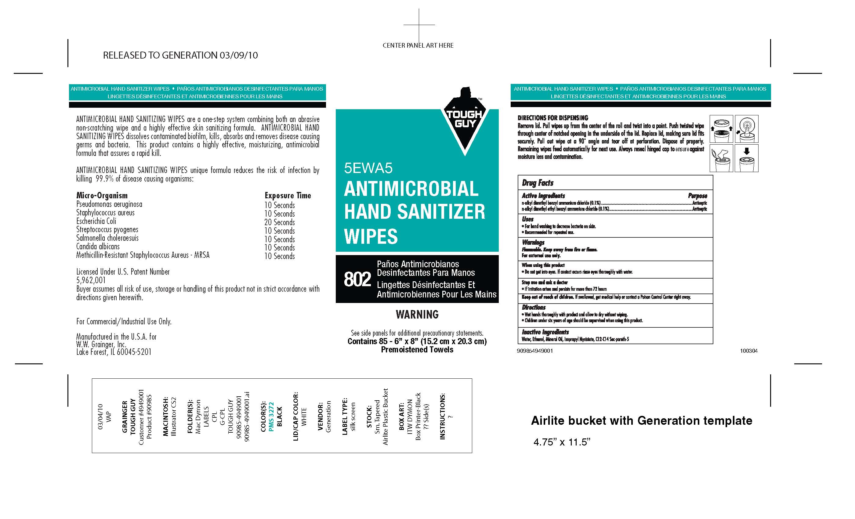 The following image provide visual information about the product associated with Tough Guy Hand Sanitizer Wipes Tough Guy NDC 40096-0802 by W.w. Grainger, Inc., such as packaging, labeling, and the appearance of the drug itself. This resource could be helpful for medical professionals, pharmacists, and patients seeking to verify medication information and ensure they have the correct product.