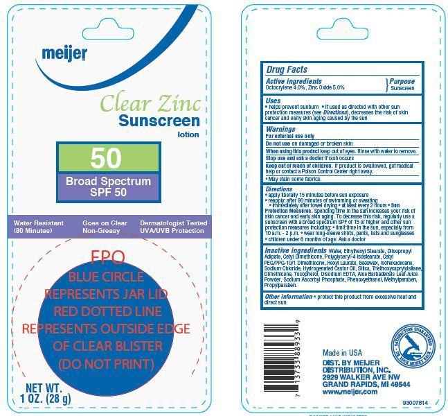 The following image provide visual information about the product associated with Meijer Clear Zinc Spf 50 NDC 41250-038 by Meijer Distribution Inc, such as packaging, labeling, and the appearance of the drug itself. This resource could be helpful for medical professionals, pharmacists, and patients seeking to verify medication information and ensure they have the correct product.