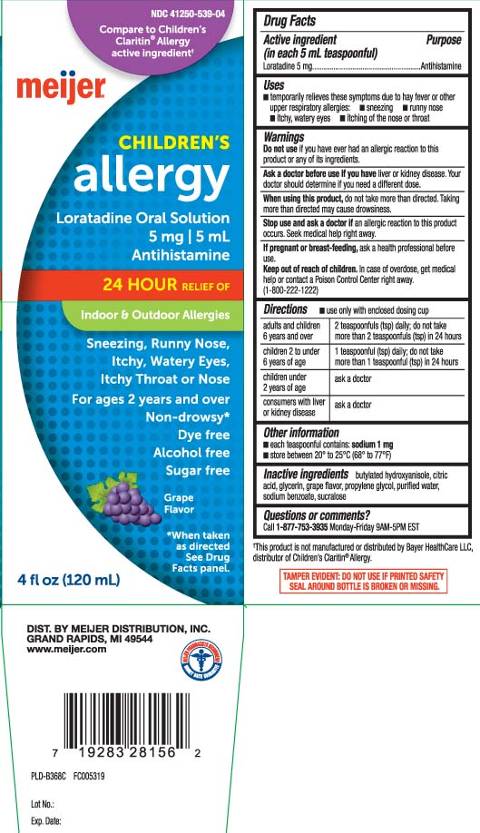 The following image provide visual information about the product associated with Allergy Childrens NDC 41250-539 by Meijer, Inc., such as packaging, labeling, and the appearance of the drug itself. This resource could be helpful for medical professionals, pharmacists, and patients seeking to verify medication information and ensure they have the correct product.