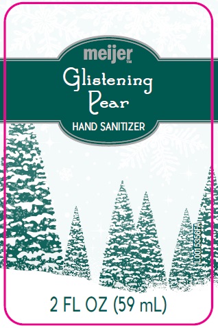 The following image provide visual information about the product associated with Glistening Pear Hand Sainitizer NDC 41250-621 by Meijer Distribution, Inc., such as packaging, labeling, and the appearance of the drug itself. This resource could be helpful for medical professionals, pharmacists, and patients seeking to verify medication information and ensure they have the correct product.