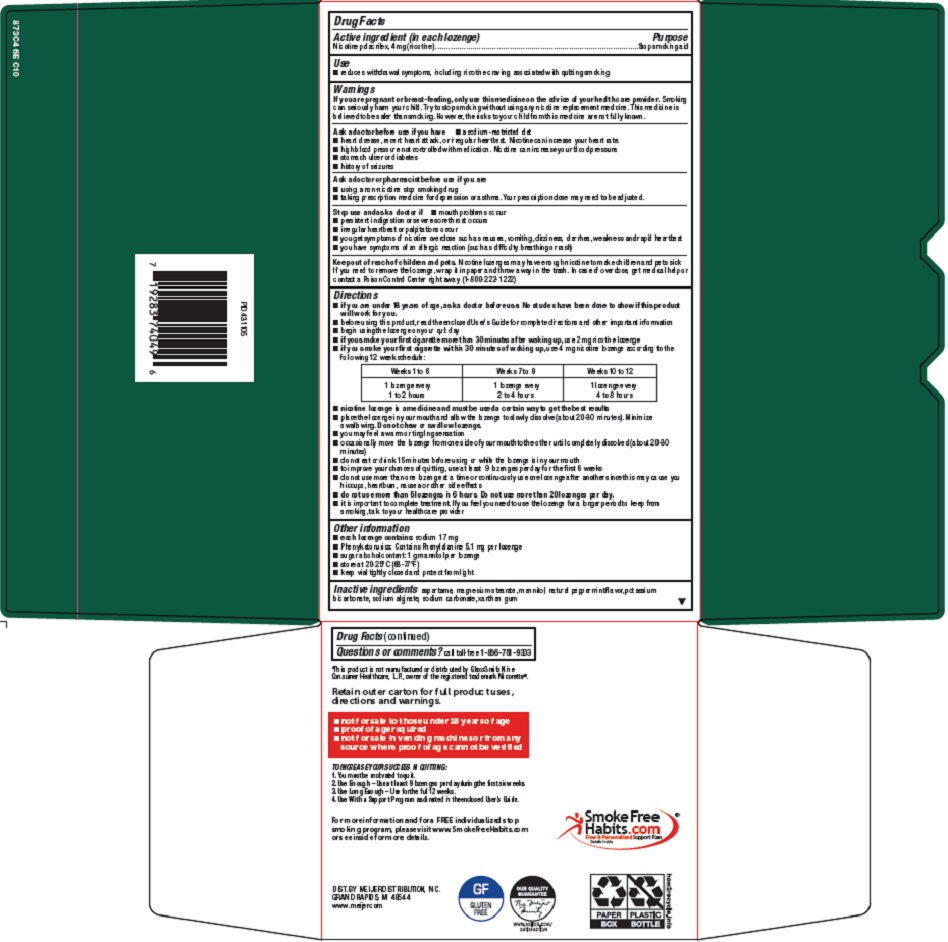 This is a product description for a stop smoking aid containing 4mg of nicotine in the form of a sugar-free mint flavored lozenge. The package contains 168 lozenges and is a value size. The text also mentions a comparison to a similar nicotine lozenge product.*