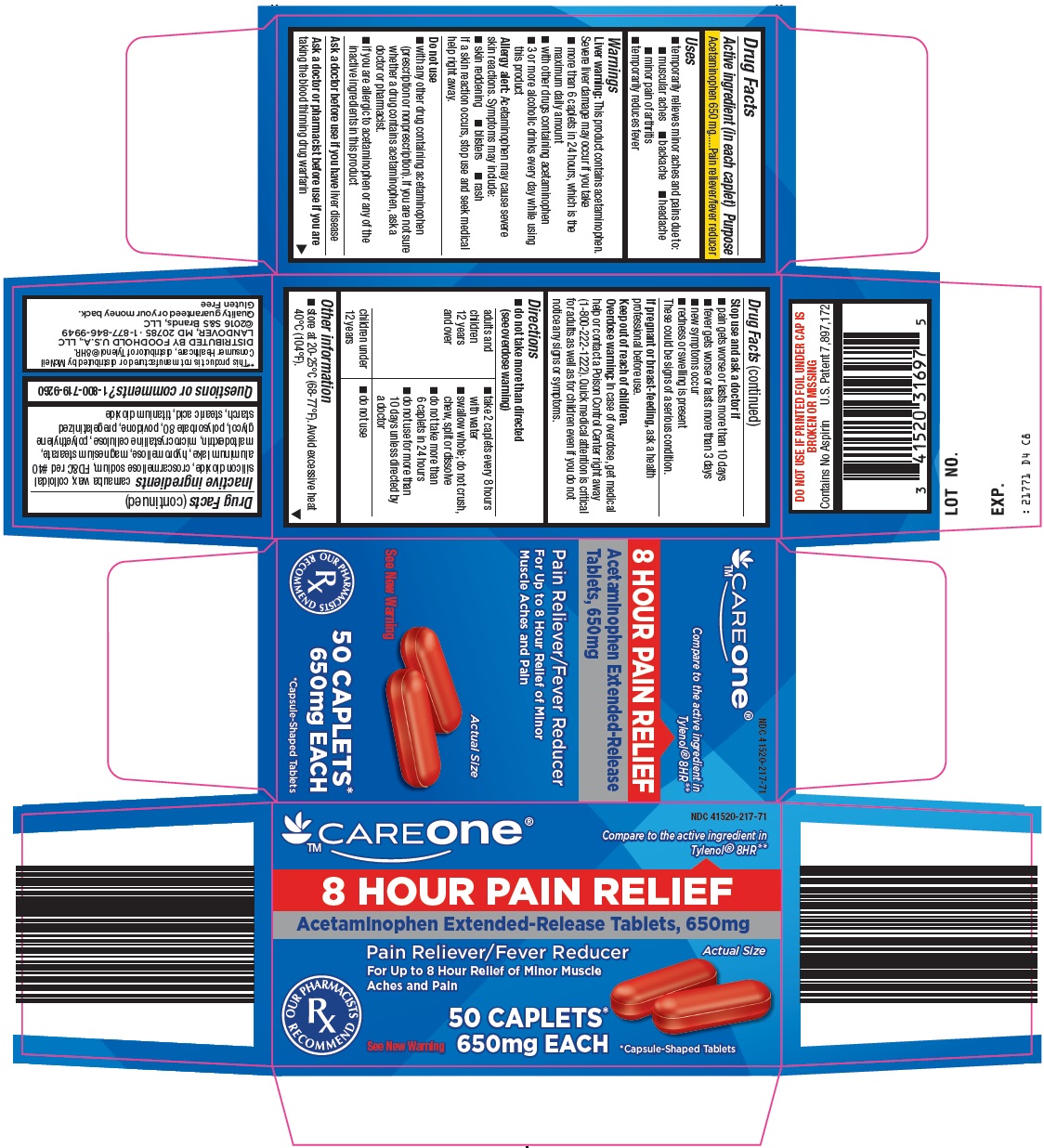 The following image provide visual information about the product associated with Care One Pain Relief 8 Hour NDC 41520-217 by American Sales Company, such as packaging, labeling, and the appearance of the drug itself. This resource could be helpful for medical professionals, pharmacists, and patients seeking to verify medication information and ensure they have the correct product.