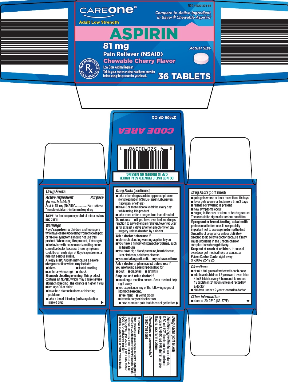 The following image provide visual information about the product associated with Careone Aspirin NDC 41520-274 by American Sales Company, such as packaging, labeling, and the appearance of the drug itself. This resource could be helpful for medical professionals, pharmacists, and patients seeking to verify medication information and ensure they have the correct product.