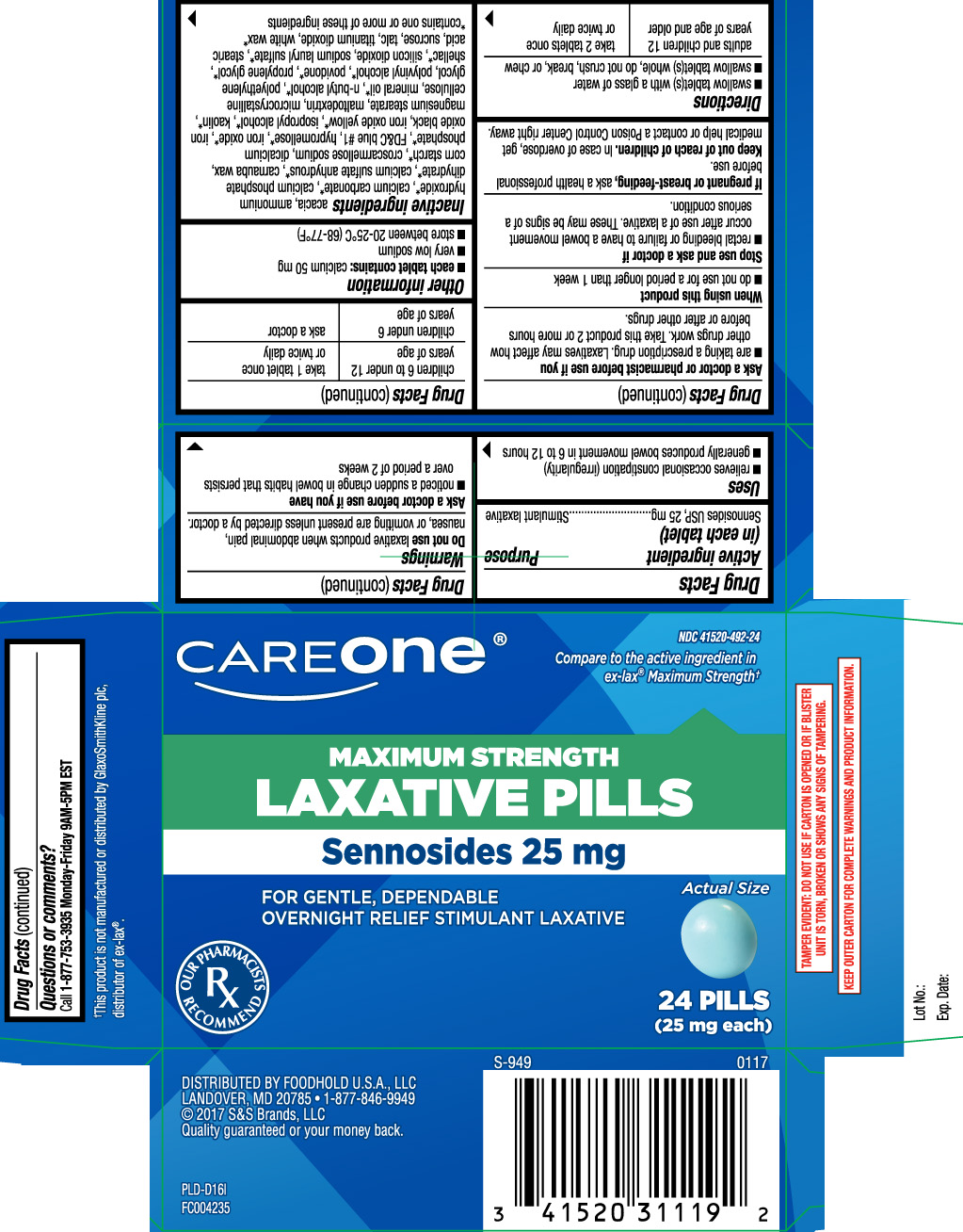 The following image provide visual information about the product associated with Laxative Pills Maximum Strength NDC 41520-492 by Care One (american Sales Company), such as packaging, labeling, and the appearance of the drug itself. This resource could be helpful for medical professionals, pharmacists, and patients seeking to verify medication information and ensure they have the correct product.