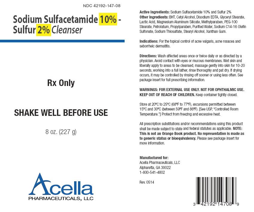 SODIUM SULFACETAMIDE 10% - SULFUR 2% CLEANSER is supplied in an 8 oz. (227 g) bottle, NDC 42192-147-08.