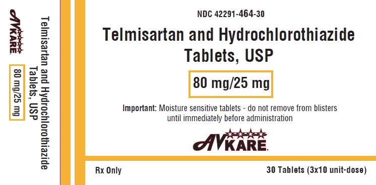 This is the description: "This text contains information about Telmisartan and Hydrochlorothiazide Tablets in 80mg/25mg dosage. The tablets are moisture sensitive, therefore should not be removed from blisters until immediate administration. The product is from AVKARE and comes in a pack of 30 tablets (3x10 unit dose)."*