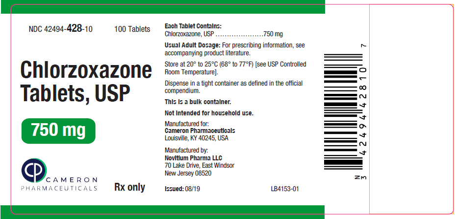The following 3 images provide visual information about the product associated with Chlorzoxazone NDC 42494-425 by Cameron Pharmaceuticals, such as packaging, labeling, and the appearance of the drug itself. This resource could be helpful for medical professionals, pharmacists, and patients seeking to verify medication information and ensure they have the correct product.
