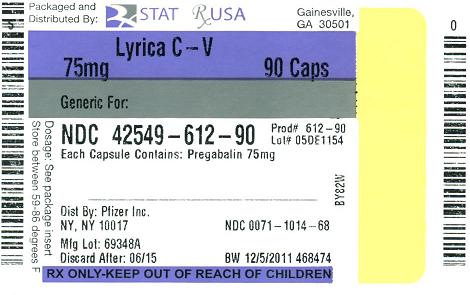 - PRINCIPAL DISPLAY PANELNDC: 42549-612-30Lyrica 75mg #30 tablets - LYRICA 50 MG C V 42549
