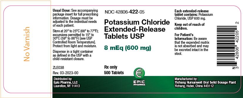 The following 6 images provide visual information about the product associated with Potassium Chloride NDC 42806-422 by Epic Pharma, Llc, such as packaging, labeling, and the appearance of the drug itself. This resource could be helpful for medical professionals, pharmacists, and patients seeking to verify medication information and ensure they have the correct product.