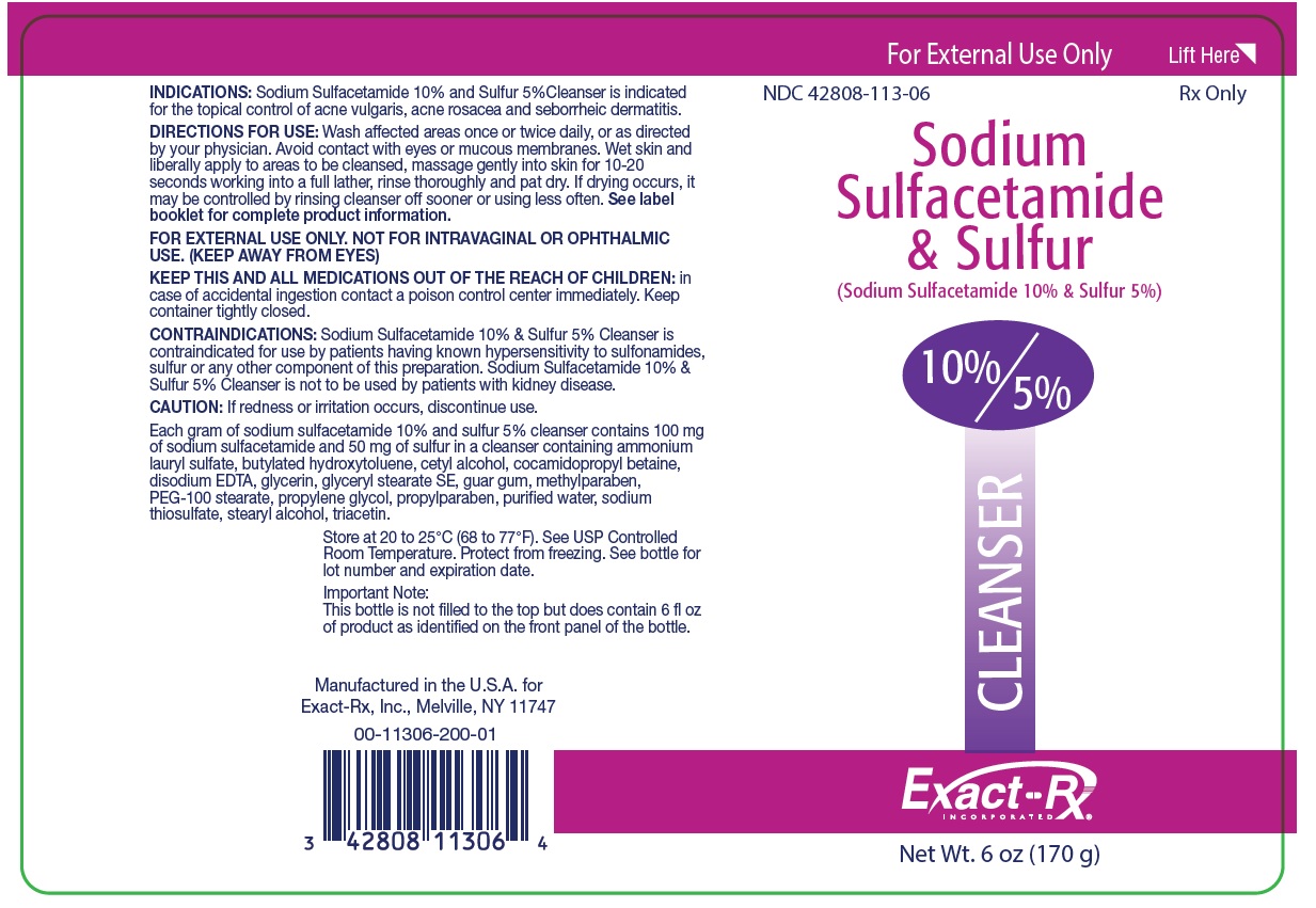 The following 2 images provide visual information about the product associated with Exact-rx Sodium Sulfacetamide And Sulfer 10%/5% Cleanser NDC 42808-113 by Exact-rx, Inc., such as packaging, labeling, and the appearance of the drug itself. This resource could be helpful for medical professionals, pharmacists, and patients seeking to verify medication information and ensure they have the correct product.