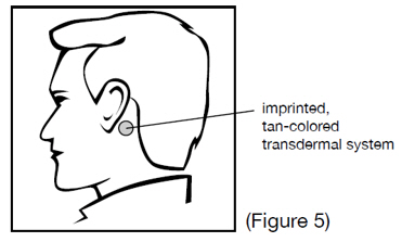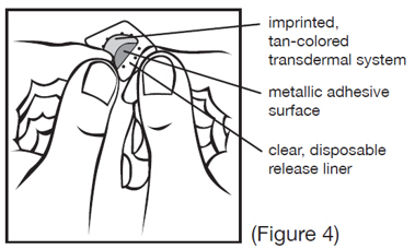 This text describes a tan-colored transdermal system with a metallic adhesive surface. It also mentions a clear, disposable release liner. The system seems to be imprinted and has a figure labeled as "Figure 4".*