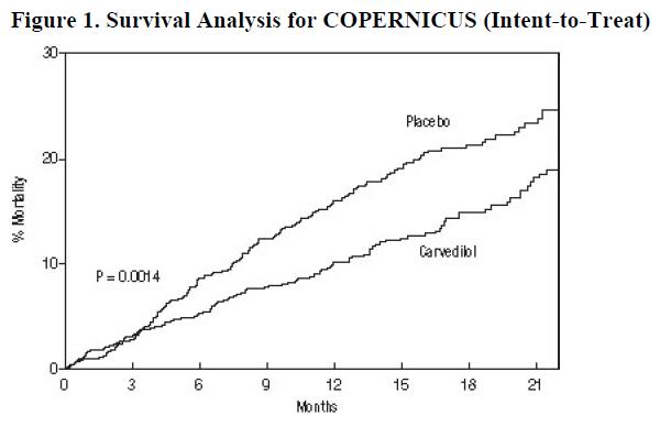 - Figure 1. Survival Analysis for COPERNICUS (Intent-to-Treat) - carvedilol fig1