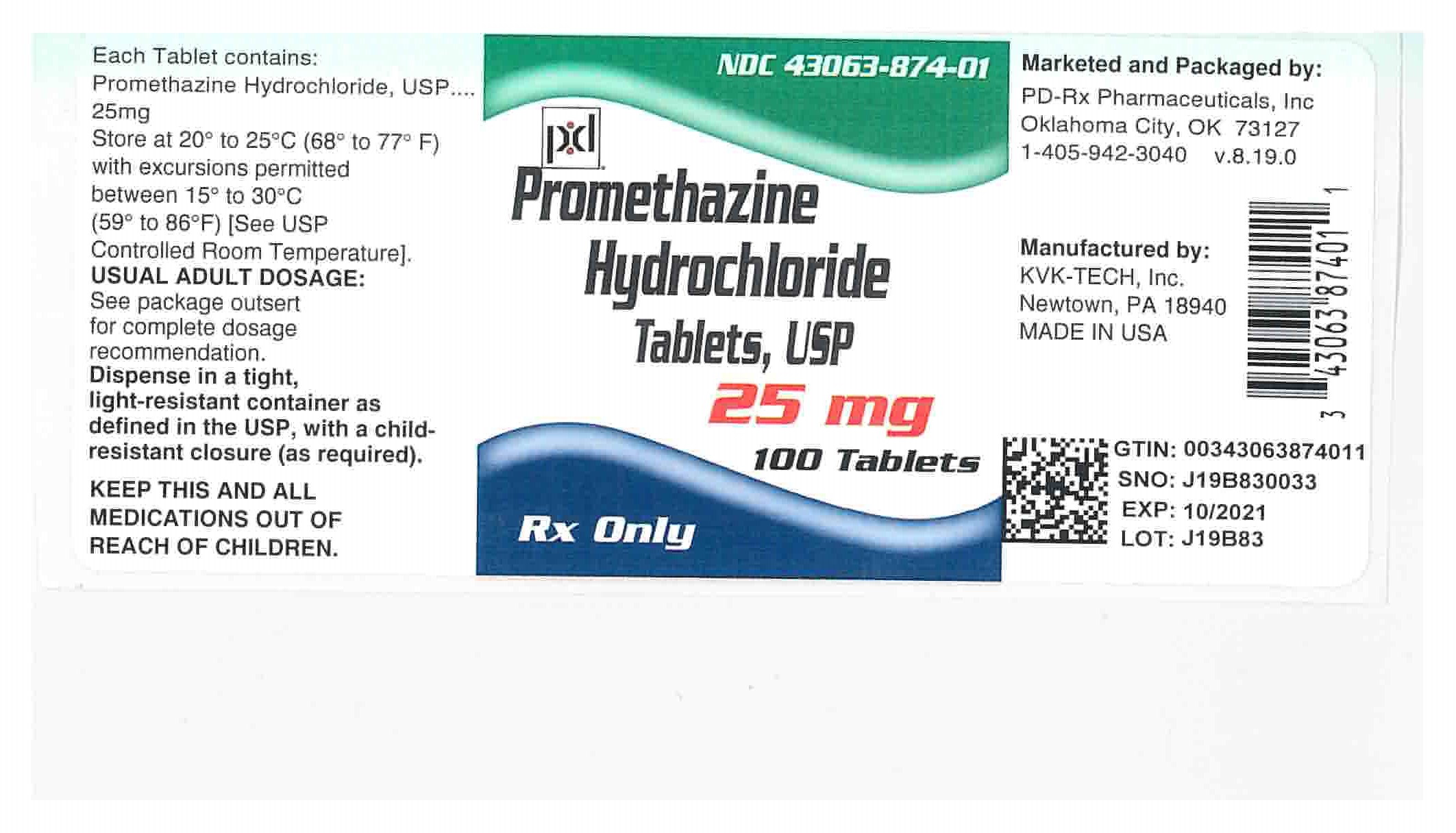 Promethazine hydrochloride tablets, USP 25 mg are supplied as white colored, round shaped, flat face bevel edge tablets, debossed “K 3” on one side and quadrisected on the other side