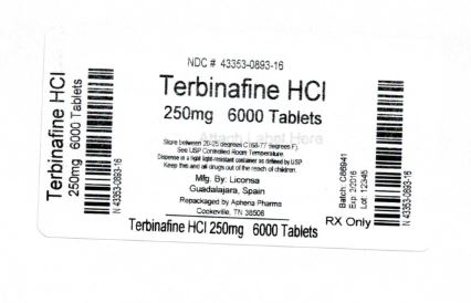 The following 3 images provide visual information about the product associated with Terbinafine Hydrochloride NDC 43353-893 by Aphena Pharma Solutions - Tennessee, Llc, such as packaging, labeling, and the appearance of the drug itself. This resource could be helpful for medical professionals, pharmacists, and patients seeking to verify medication information and ensure they have the correct product.