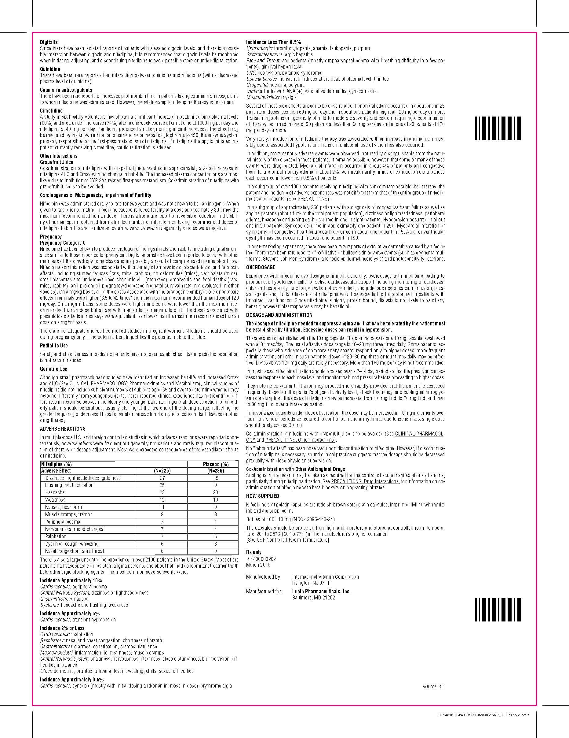 The following 5 images provide visual information about the product associated with Nifedipine NDC 43386-440 by Lupin Pharmaceuticals Inc, such as packaging, labeling, and the appearance of the drug itself. This resource could be helpful for medical professionals, pharmacists, and patients seeking to verify medication information and ensure they have the correct product.
