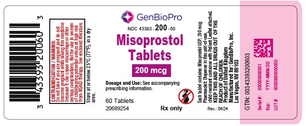 The following 2 images provide visual information about the product associated with Misoprostol NDC 43393-200 by Genbiopro, Inc., such as packaging, labeling, and the appearance of the drug itself. This resource could be helpful for medical professionals, pharmacists, and patients seeking to verify medication information and ensure they have the correct product.