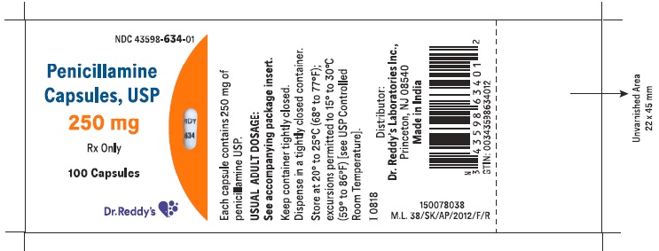 The following 3 images provide visual information about the product associated with Penicillamine NDC 43598-634 by Dr. Reddy's Laboratories Inc., such as packaging, labeling, and the appearance of the drug itself. This resource could be helpful for medical professionals, pharmacists, and patients seeking to verify medication information and ensure they have the correct product.