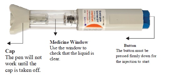 The text describes a window that is used for checking the liquid medicine. The purpose of the window is to ensure that the medicine is okay before using the injection pen. The text also suggests that the pen will not work until the cap is removed.*