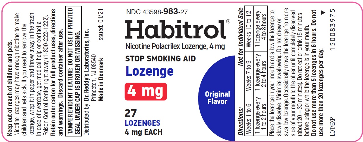 The following 7 images provide visual information about the product associated with Habitrol Lozenge Original Flavor NDC 43598-983 by Dr. Reddy's Laboratories Inc., such as packaging, labeling, and the appearance of the drug itself. This resource could be helpful for medical professionals, pharmacists, and patients seeking to verify medication information and ensure they have the correct product.