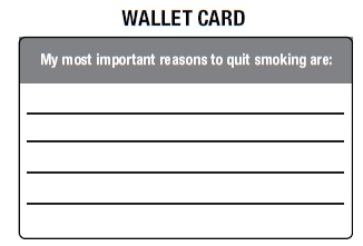 The text is a description of a wallet card that provides contact information for organizations that offer help to people who are seeking to quit smoking. The card includes the phone numbers for the American Lung Association, the American Cancer Society, the American Heart Association, and suggestions for contacting a quitting buddy or friend.*