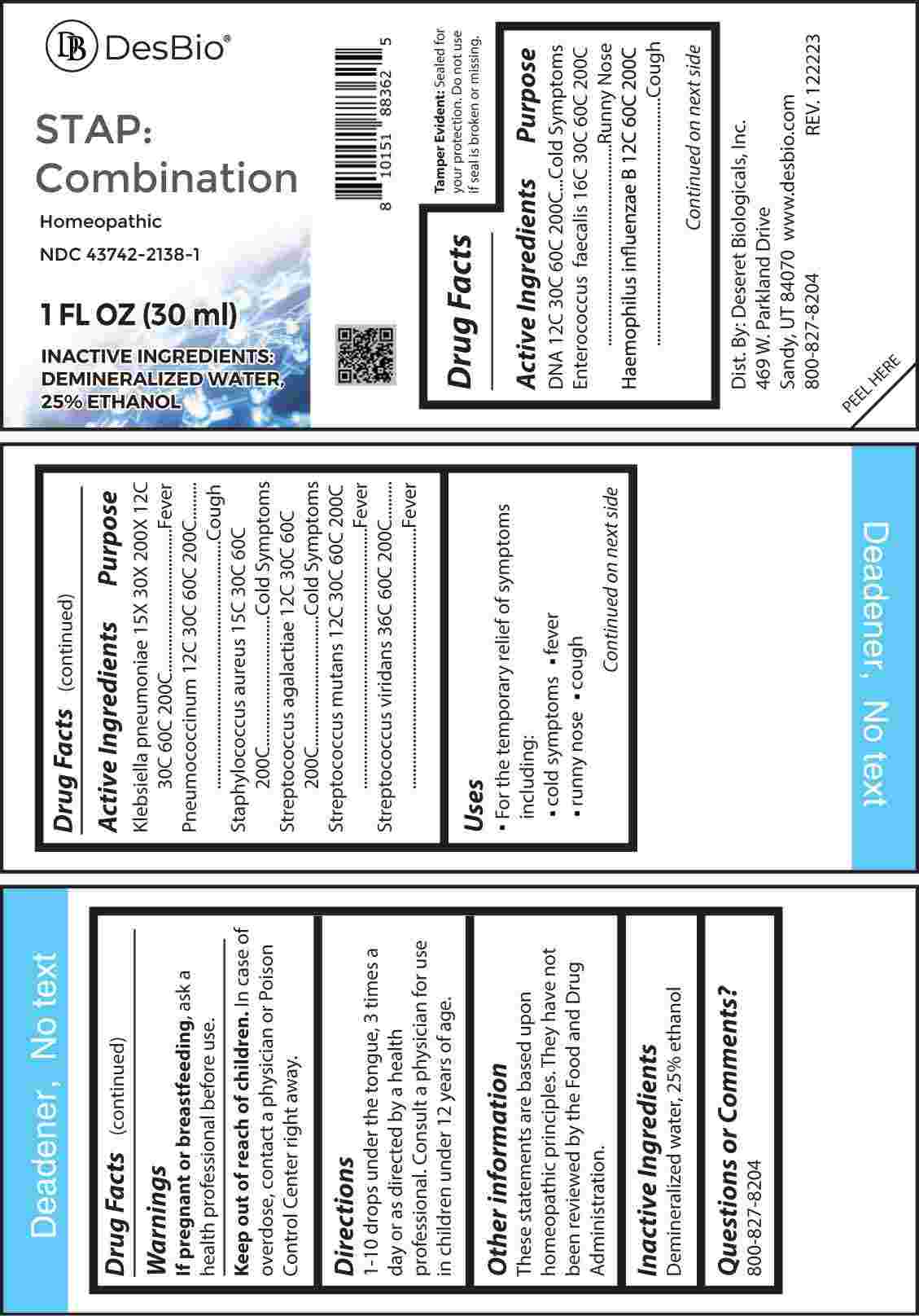 The following image provide visual information about the product associated with Stap Combination NDC 43742-2138 by Deseret Biologicals, Inc., such as packaging, labeling, and the appearance of the drug itself. This resource could be helpful for medical professionals, pharmacists, and patients seeking to verify medication information and ensure they have the correct product.