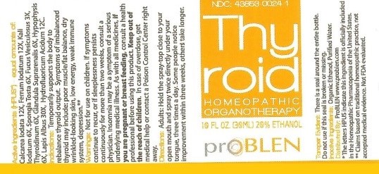 The following image provide visual information about the product associated with Thyroid NDC 43853-0024 by Problen, such as packaging, labeling, and the appearance of the drug itself. This resource could be helpful for medical professionals, pharmacists, and patients seeking to verify medication information and ensure they have the correct product.