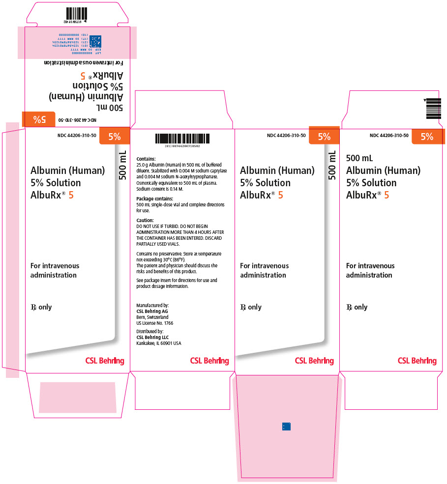 500 mL | 44206-310-50 | One vial containing 25 grams of albumin [NDC 44206-310-91] |