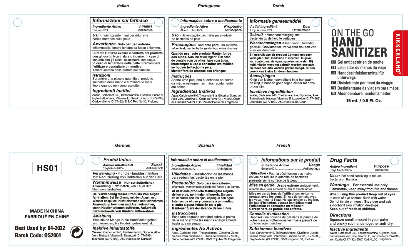 This is a description of a hand sanitizer gel labeled with a batch code and expiration date. The product is made in China and contains active ingredients such as Etancla and AcoolEticn for reducing bacteria on the skin. The instructions recommend squirting a small amount on palms and rubbing them together until dry. There are warnings to keep the product away from flames and out of reach of children. There is also a list of inactive ingredients and translations of the product details in Italian, Portuguese, Dutch, German, Spanish, and French.*