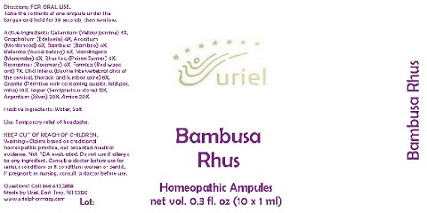 The following image provide visual information about the product associated with Bambusa Rhus NDC 48951-2016 by Uriel Pharmacy Inc., such as packaging, labeling, and the appearance of the drug itself. This resource could be helpful for medical professionals, pharmacists, and patients seeking to verify medication information and ensure they have the correct product.