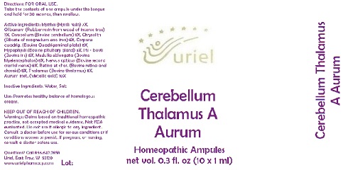 This is a product package for Homeopathic Ampules named "Cerebellum Thalamus A Aurum" with a net volume of 03 i, oz (10 x 1 m). The product contains ingredients such as Cerebellum, Thalamus, and Aurum.*
