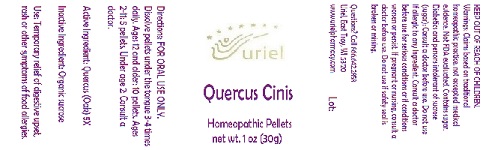 This text appears to be a label of a homeopathic product named "Quercus Cinis" in pellet form. The product net weight is 102 (309) and the address of the manufacturer or retailer is provided: 2185 ey Unkroe2 Gt. However, some of the characters are not readable and do not seem to be in English.*