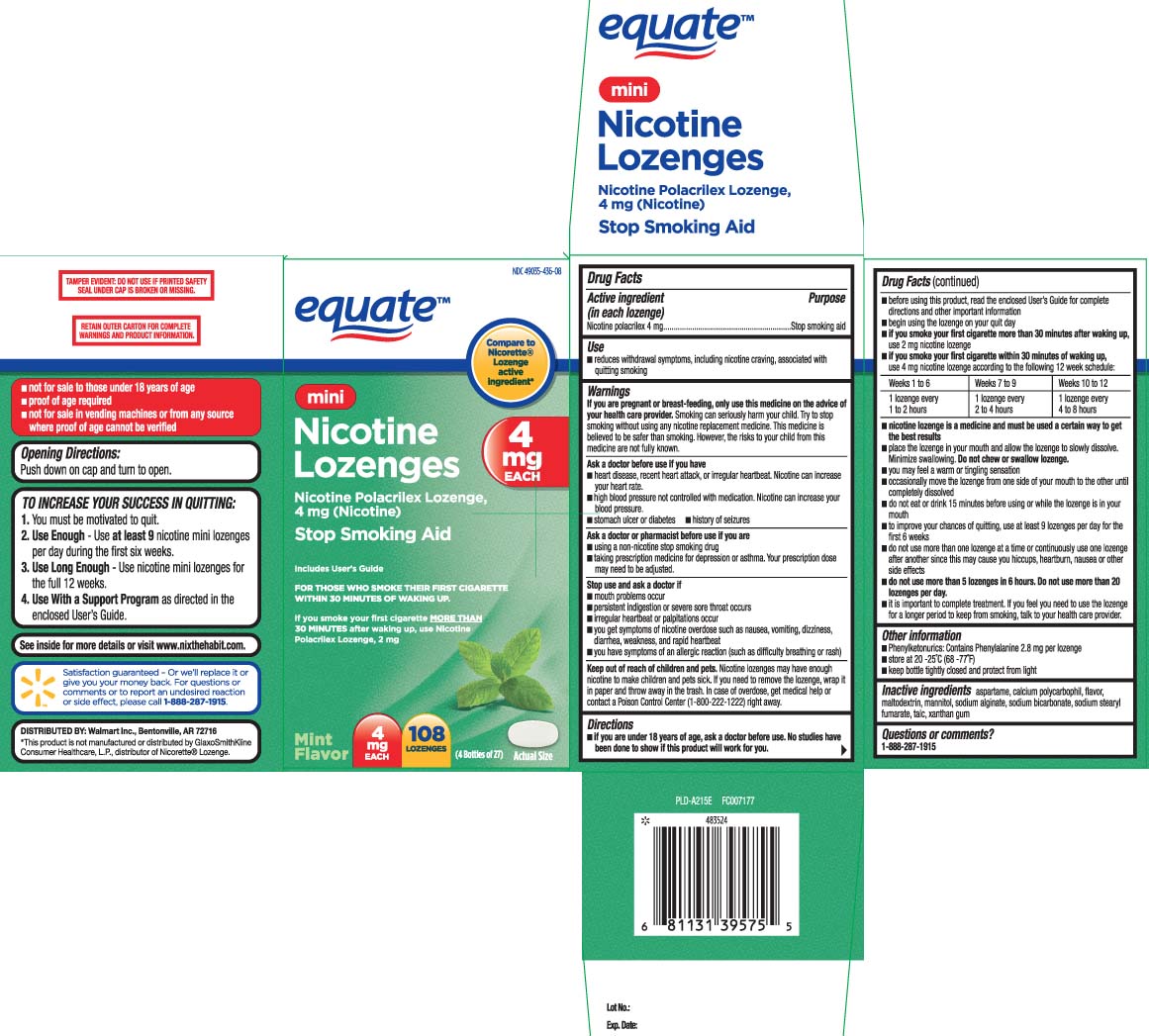 The following image provide visual information about the product associated with Mini Nicotine NDC 49035-436 by Equate (wal-mart Stores, Inc.) (see Also Wal-mart Inc), such as packaging, labeling, and the appearance of the drug itself. This resource could be helpful for medical professionals, pharmacists, and patients seeking to verify medication information and ensure they have the correct product.