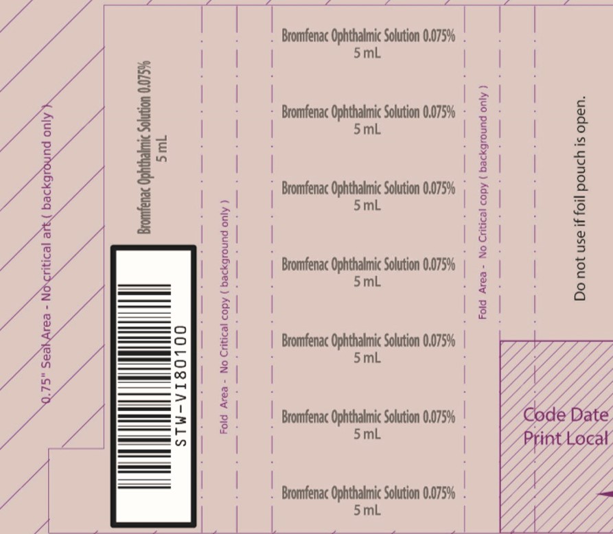 Bromfenac ophthalmic solution 0.075% is supplied in white opaque low density polyethylene (LDPE) plastic bottles and translucent dropper tips, and gray high density polyethylene (HDPE) eyedropper caps. A white tamper evident overcap is provided. Each bottle is provided in a sealed foil laminated pouch.