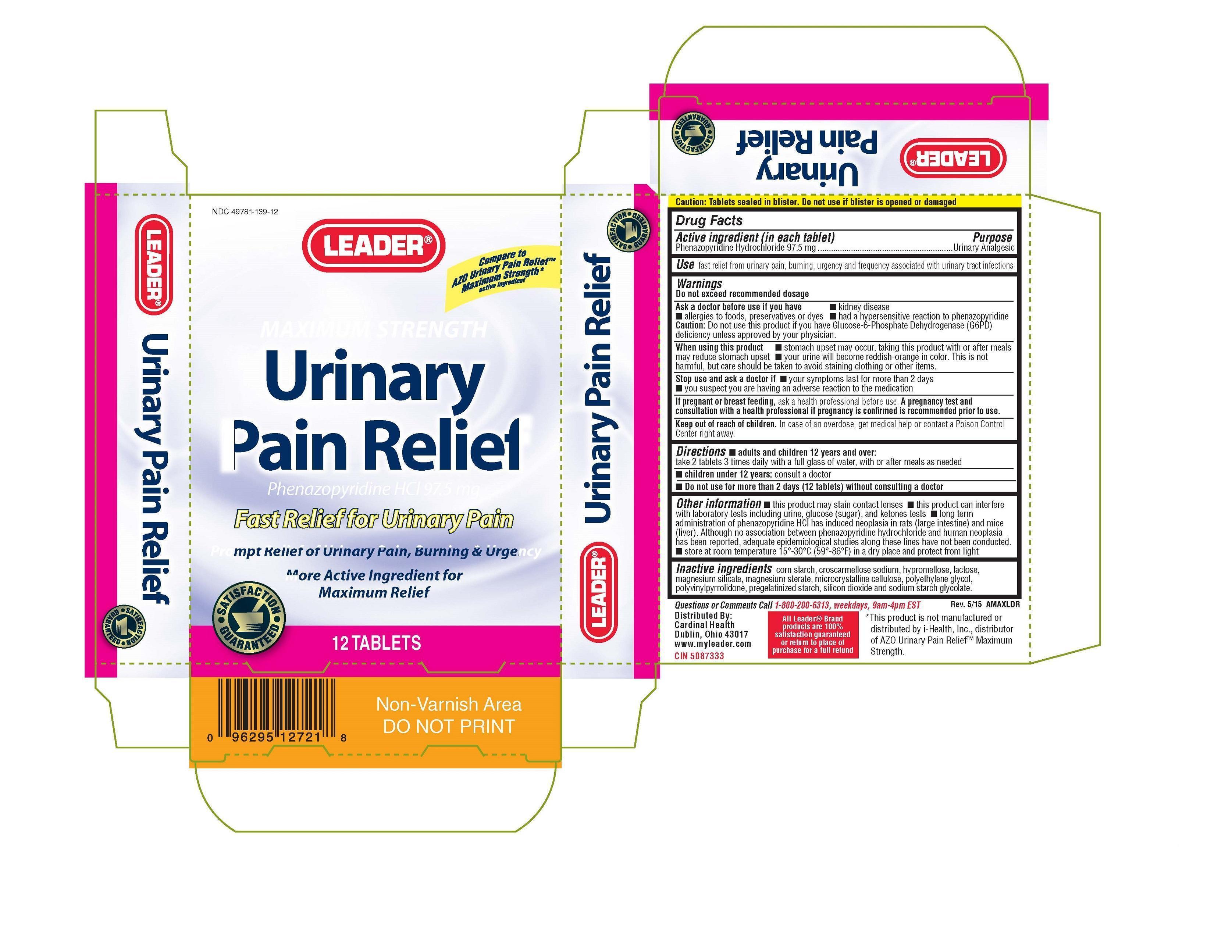 Leader Maximum Strength Urinary Pain Relief Product Label
