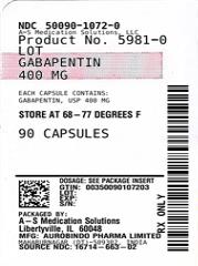 This is a description for a product labeled "050-107". The product contains 90 capsules of Gabapentin, with a dosage strength of 480 mg. The Lot Number is indicated as "5981-0".*