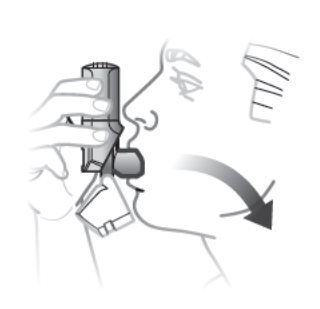 This is a description of an inhaler that has 120 doses when it's full. The inhaler has a dose counter which indicates the number of doses remaining in the inhaler. At the moment, the inhaler is empty, and there are no doses left.*