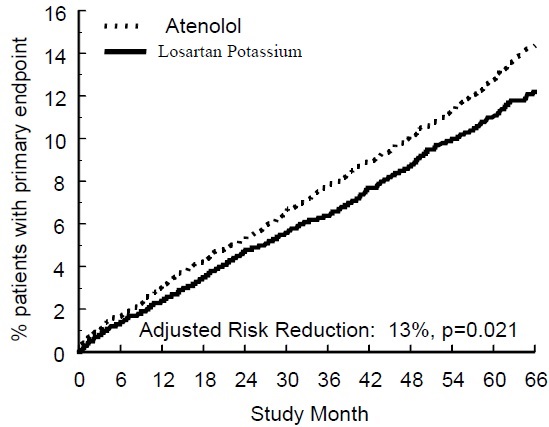 Losartan potassium tablets are indicated to reduce the risk of stroke in patients with hypertension and left ventricular hypertrophy, but there is evidence that this benefit does not apply to Black patients [see Use in Specific Populations ( 8.6) and Clinical Pharmacology ( 12.3)].