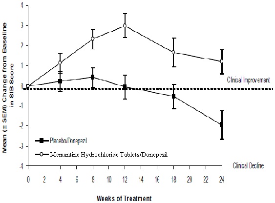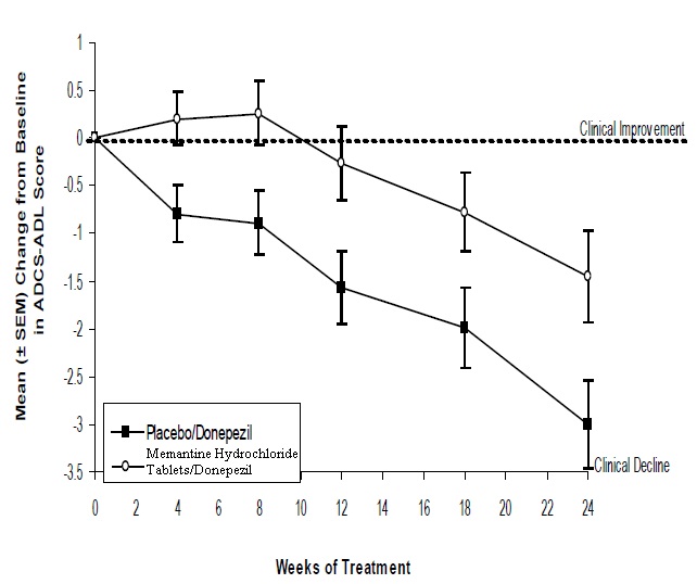 Cumulative Percentage of Patients showing change from baseline in ADCS-ADL scores after treatment with Receho/Donepezil and Memastine Hydrochloride Tablets/Donepezil. The graph shows the distribution of patients' responses over time.*