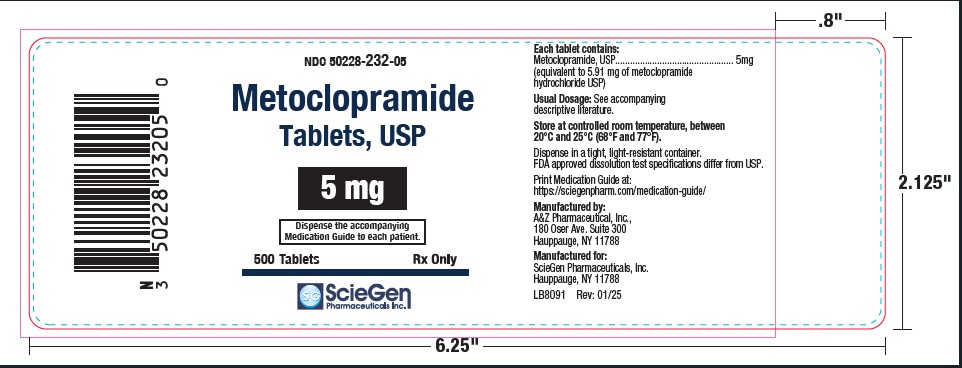 The following 6 images provide visual information about the product associated with Metoclopramide NDC 50228-232 by Sciegen Pharmaceuticals, Inc., such as packaging, labeling, and the appearance of the drug itself. This resource could be helpful for medical professionals, pharmacists, and patients seeking to verify medication information and ensure they have the correct product.