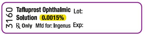 This text describes a Tafluprost Ophthalmic Solution with a concentration of 0.0015% intended for topical application in the eye. The solution is supplied in single-dose containers and is preservative-free and sterile. It should be refrigerated between 2 to 8 degrees Celsius (36 to 46 degrees Fahrenheit). The product is indicated for ophthalmic use and comes in packs of 30 single-dose containers.*