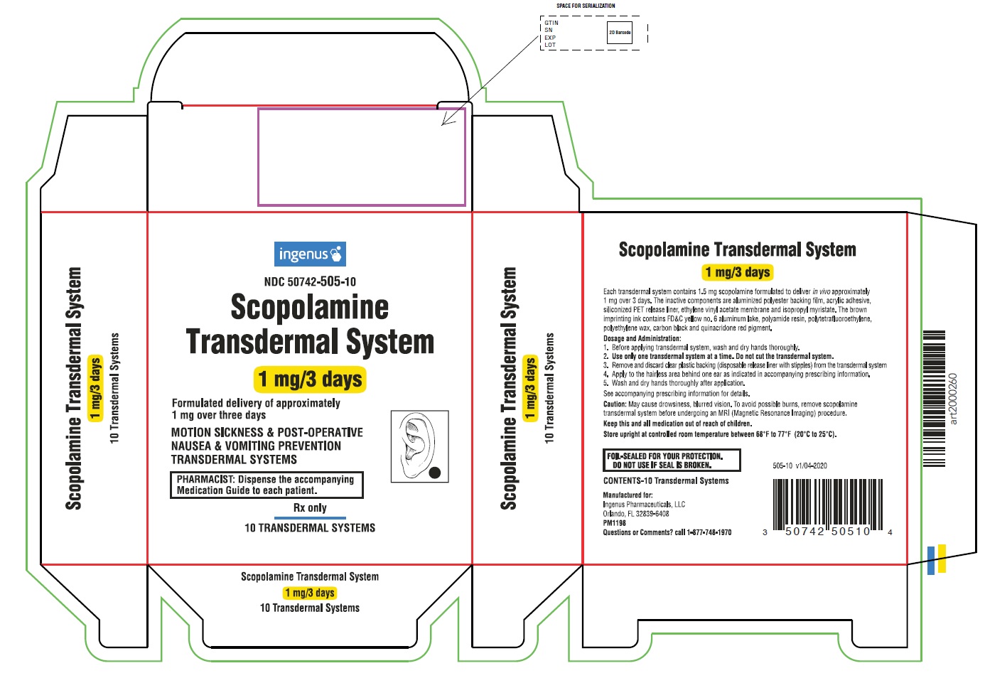 The following 12 images provide visual information about the product associated with Scopolamine NDC 50742-505 by Ingenus Pharmaceuticals, Llc, such as packaging, labeling, and the appearance of the drug itself. This resource could be helpful for medical professionals, pharmacists, and patients seeking to verify medication information and ensure they have the correct product.