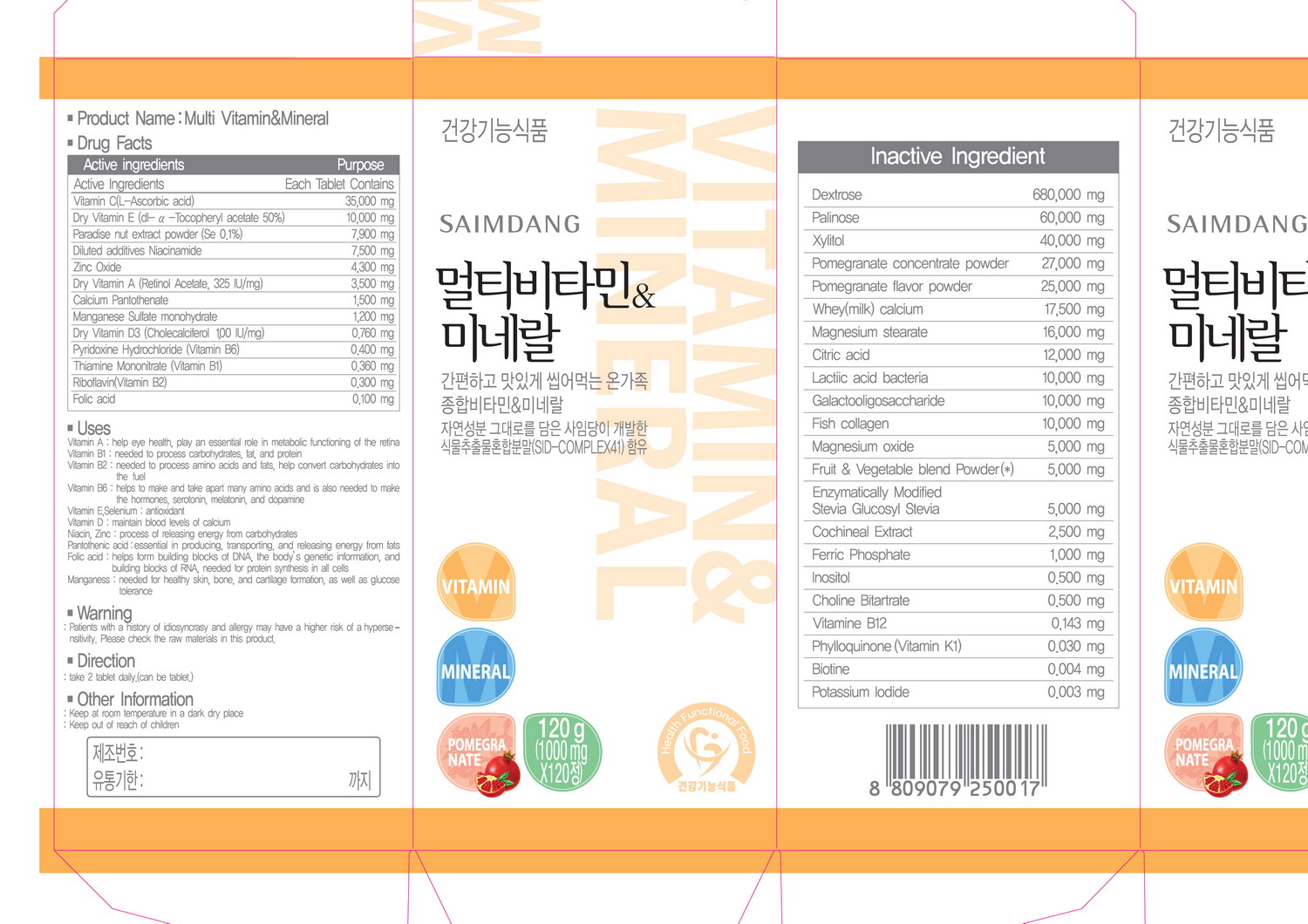 The following image provide visual information about the product associated with Multi Vitamin And Mineral Vitamin NDC 51220-2001 by Saimdang Cosmetics Co., Ltd, such as packaging, labeling, and the appearance of the drug itself. This resource could be helpful for medical professionals, pharmacists, and patients seeking to verify medication information and ensure they have the correct product.