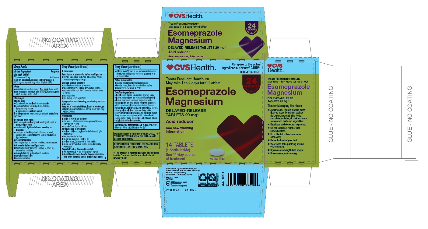 The following 2 images provide visual information about the product associated with Esomeprazole Magnesium NDC 51316-088 by Cvs Pharmacy, Inc., such as packaging, labeling, and the appearance of the drug itself. This resource could be helpful for medical professionals, pharmacists, and patients seeking to verify medication information and ensure they have the correct product.